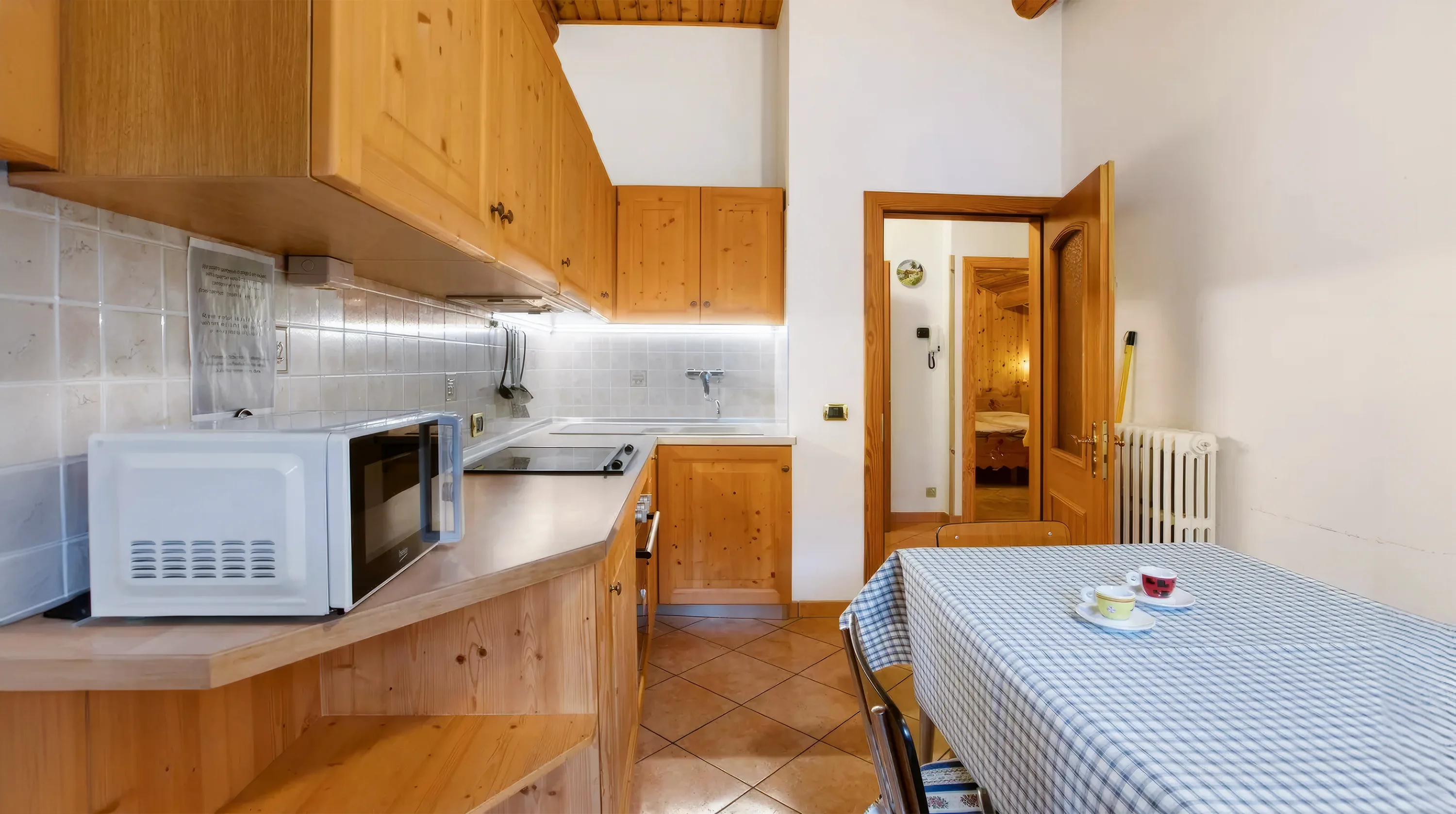 Der Wohn/Ess- und Küchenbereich ist voll ausgestattet mit einer Spülmaschine, einem Glaskeramik-Kochfeld, einen Ofen, Geschirr sowie Satellitenfernsehen mit internationalen Kanälen. Bettwäsche und Handtücher werden zur Verfügung gestellt.
