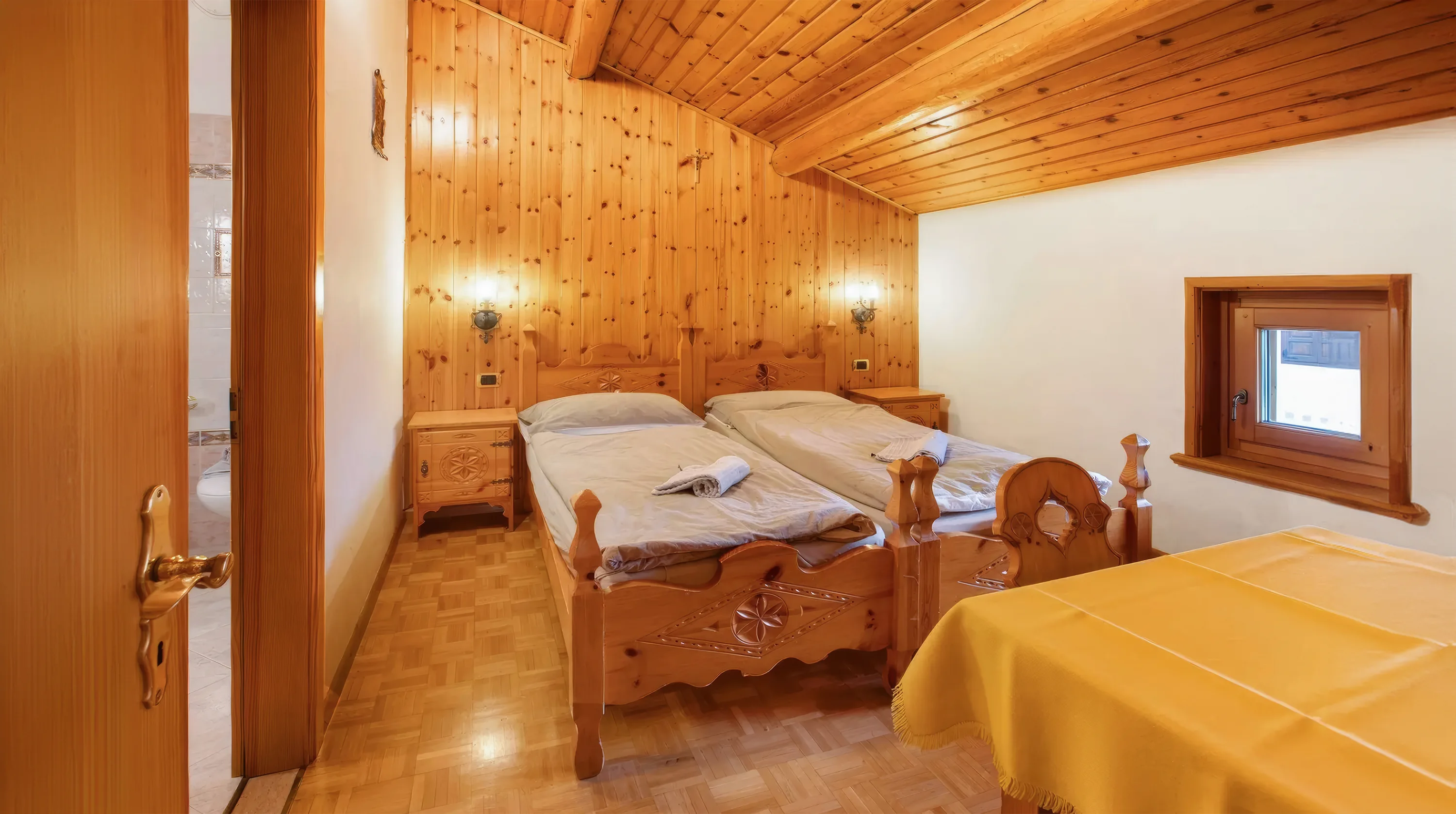 Das, über eine Außentreppe erreichbare Apartment „Otto“ bietet Platz für bis zu vier Personen. Sie verfügt über zwei, getrennte Schlafzimmer. Eins mit einem Doppelbett und das zweite Schafzimmer verfügt über zwei Einzelbetten. Genügend Platz für ein Kinderbett ist vorhanden. Jedes Schlafzimmer hat ein eigenes Badezimmer mit Dusche. Zudem verfügt die Wohnung über einen Balkon. Die private Terrasse mit Blick auf die Berge und das Dorf kann ebenfalls genutzt werden.