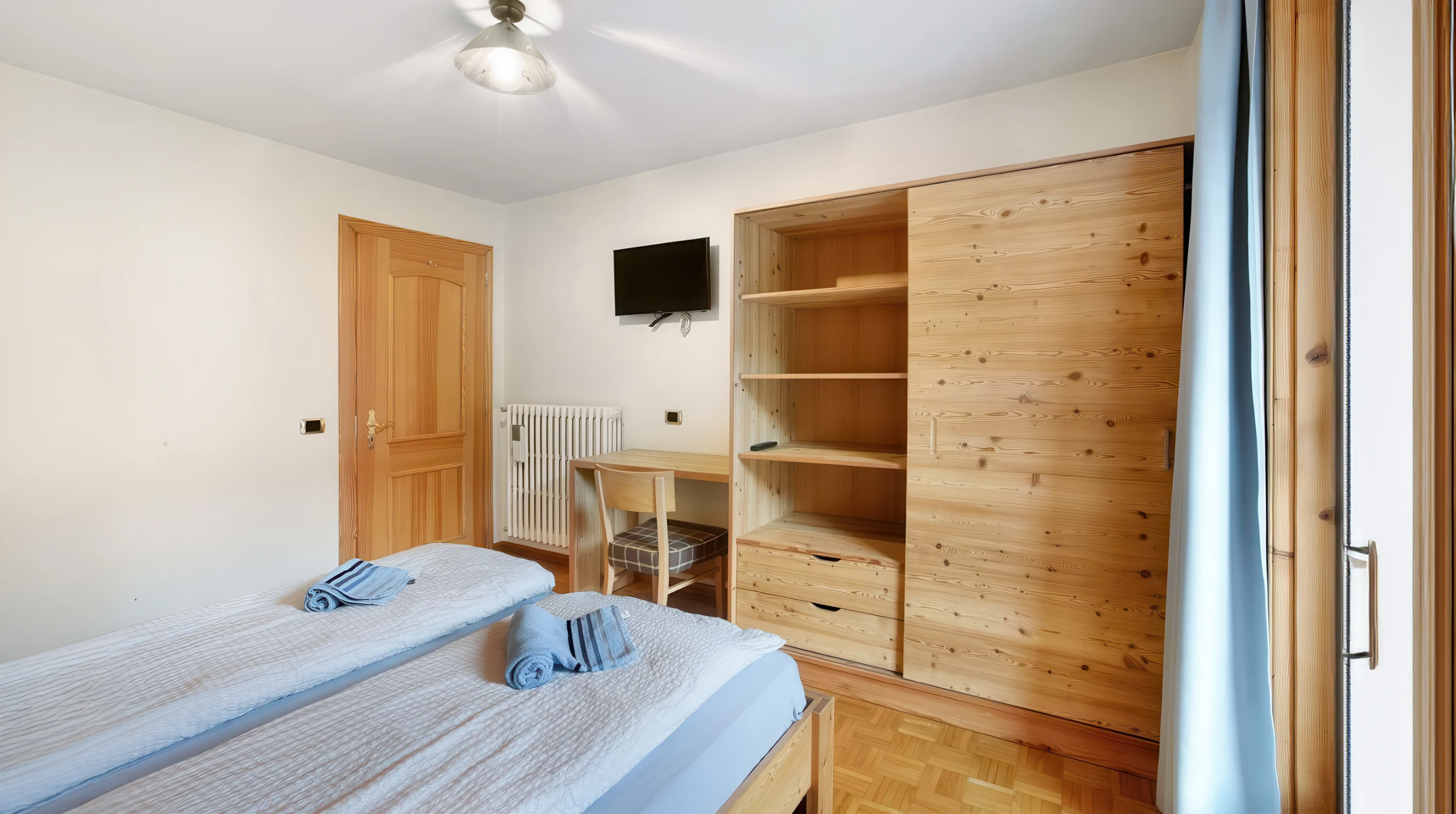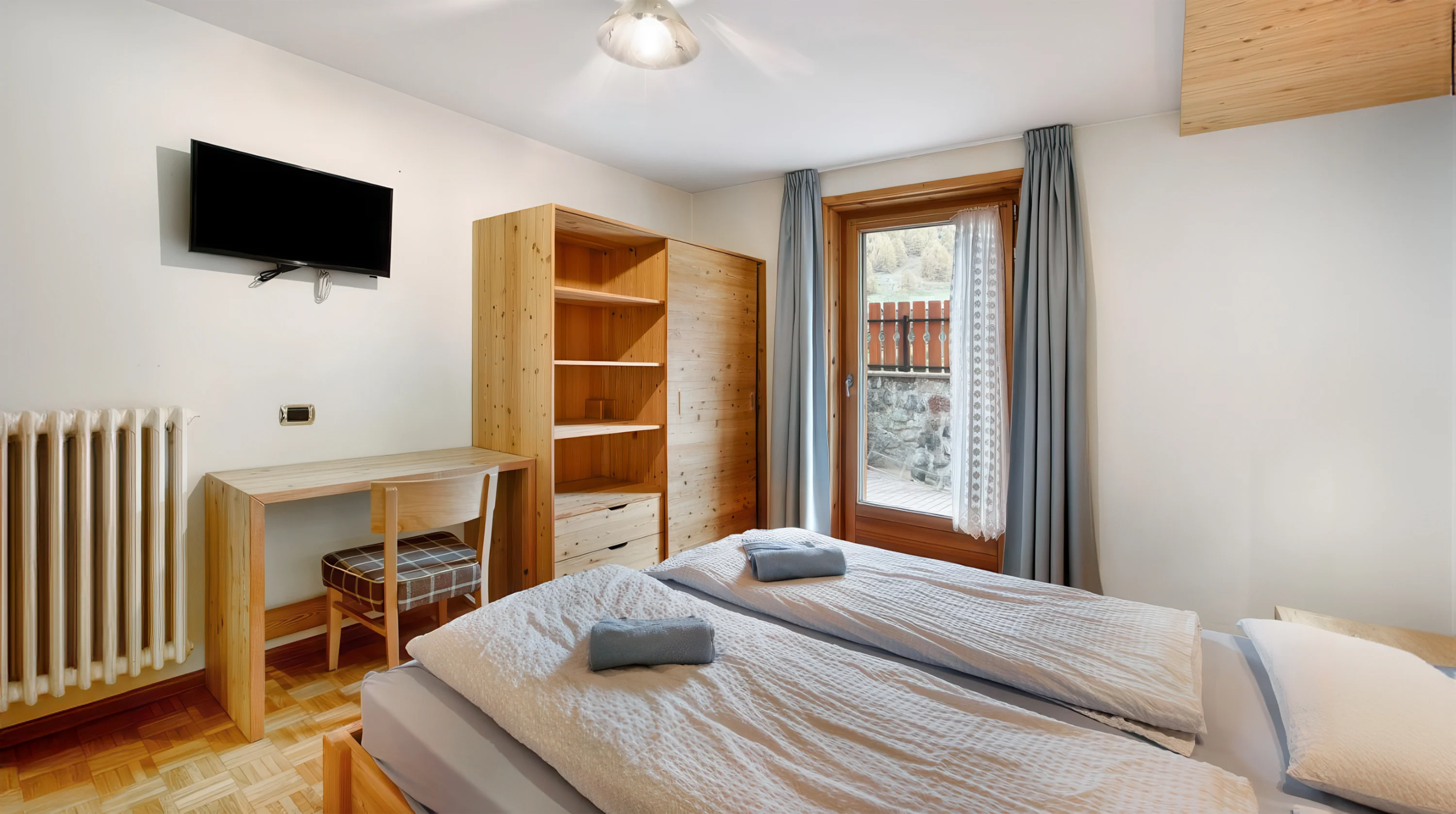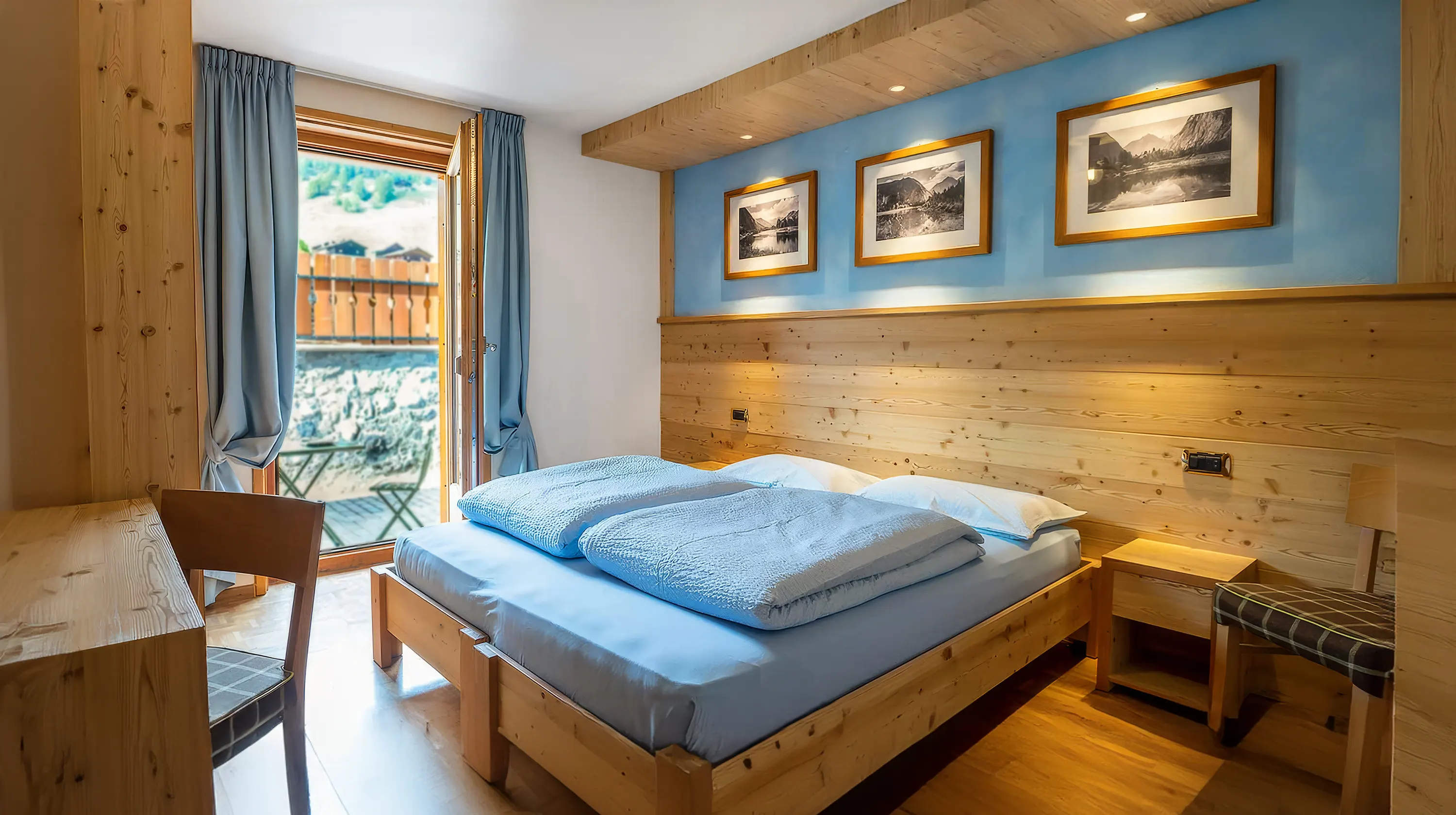 L'Appartamento Lago, situato al piano terra, può ospitare fino a due persone e una culla, dispone di una camera da letto, la quale può essere matrimoniale o due letti singoli. Ogni camera è dotata di un bagno privato con doccia cromo terapia. L’appartamento è stato recentemente oggetto di nuovo restyling Inoltre, l'appartamento offre un’area esterna privata con vista montagna.